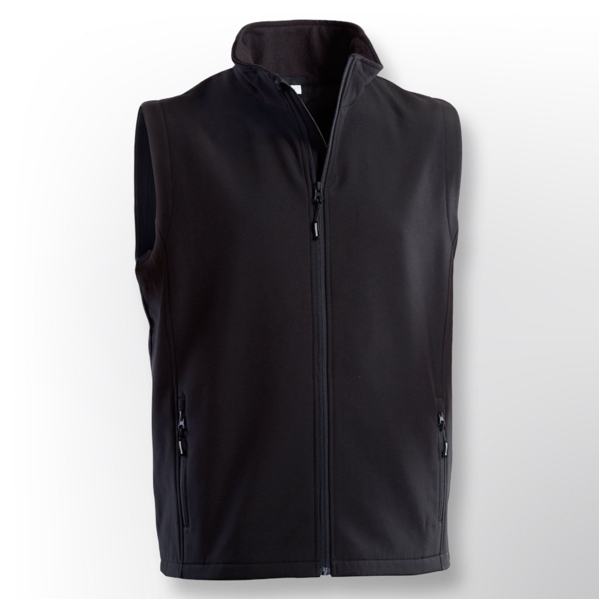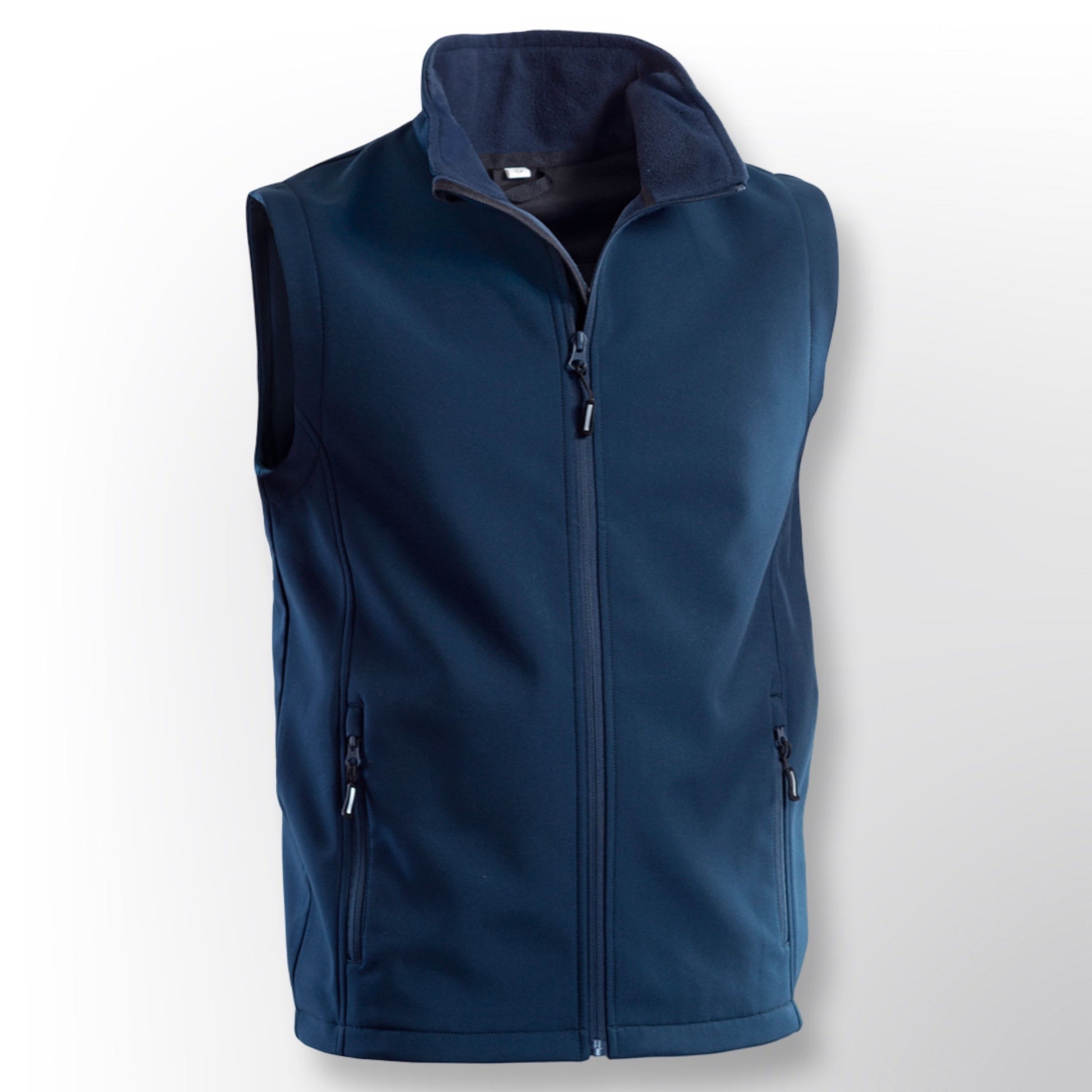 Gilet softshell 2 strati, chiusura frontale con cerniera, 2 tasche laterali chiuse con zip, 2 tasche interne sul fondo, tirazip argento fluo.