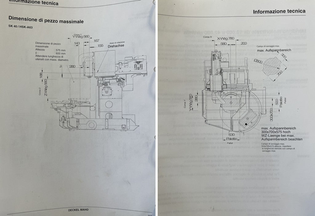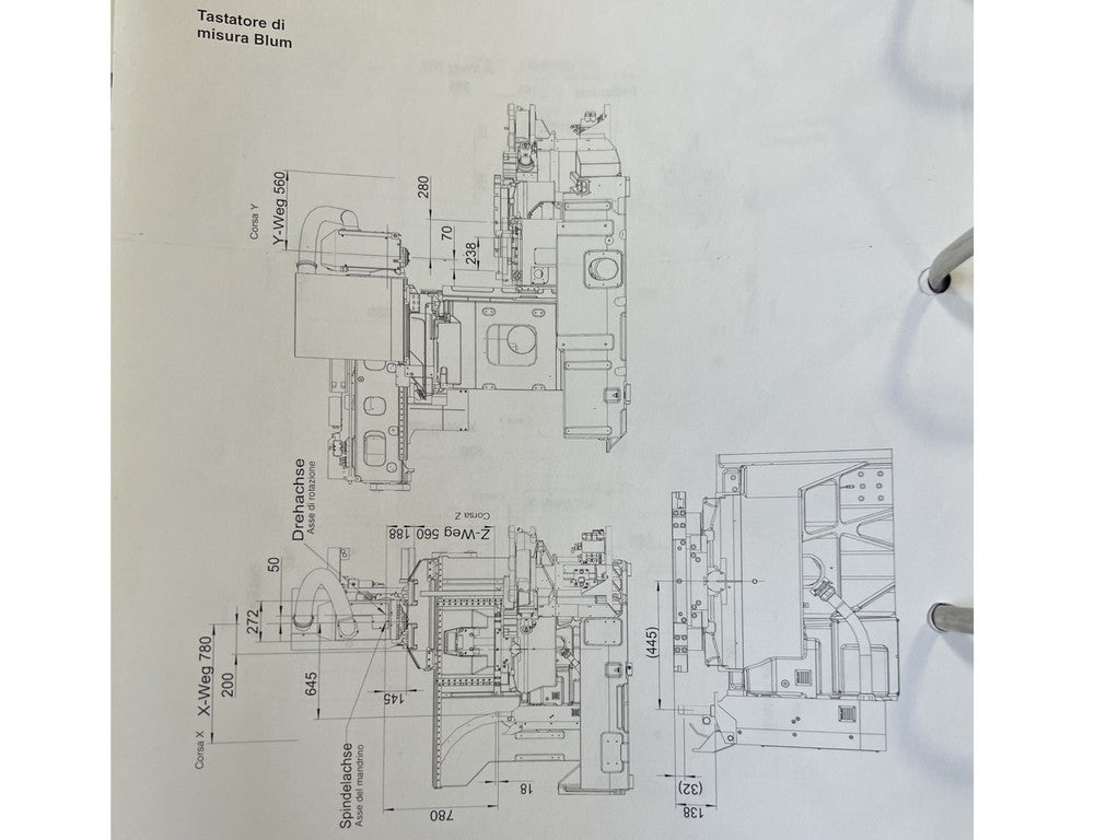 Corse assi x 780, y 560, z 560 mm, movimento ASSE-B: +30° to -120°, movimento ASSE-C: 360° stepless, cnc SIEMENS 840D PowerLine con Shop Mill, anno di costruzione 2006, a norme CE.