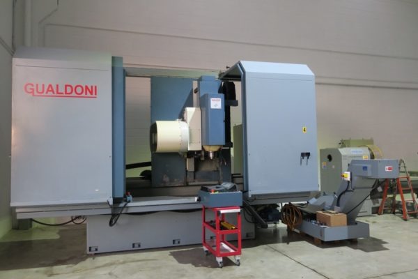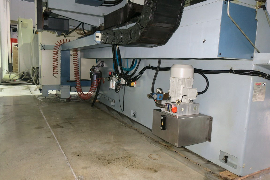 l centro di lavoro verticale a montante mobile GUALDONI GV 400 usato è un centro verticale a controllo numerico di medio/grandi dimensioni con cnc SELCA 4040D, corse 2030 x 670 x 600mm, mandrino BT-40 10.000 giri, cambio utensili random a 32 posizioni, refrigerazione attraverso il mandrino, evacautore di trucioli a tappeto, apertura porte automatica e paratia per lavorazioni in pendolare.