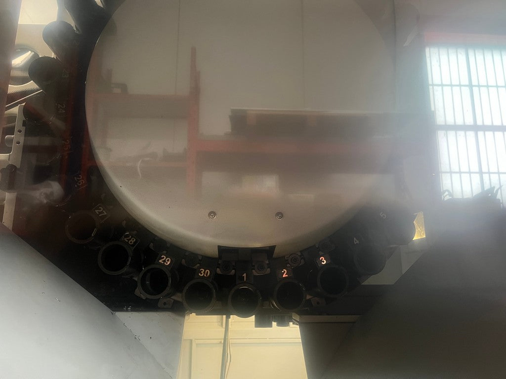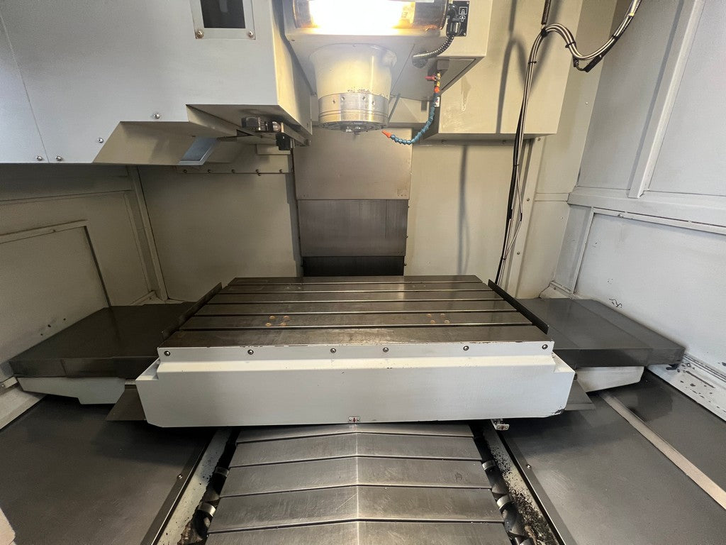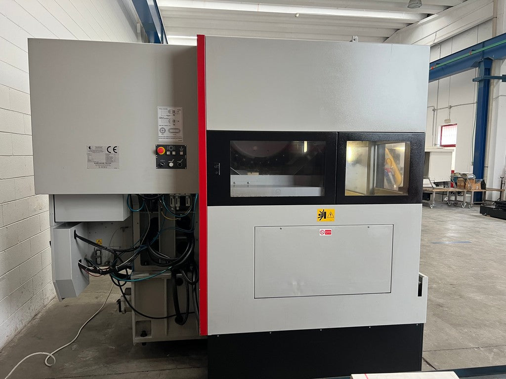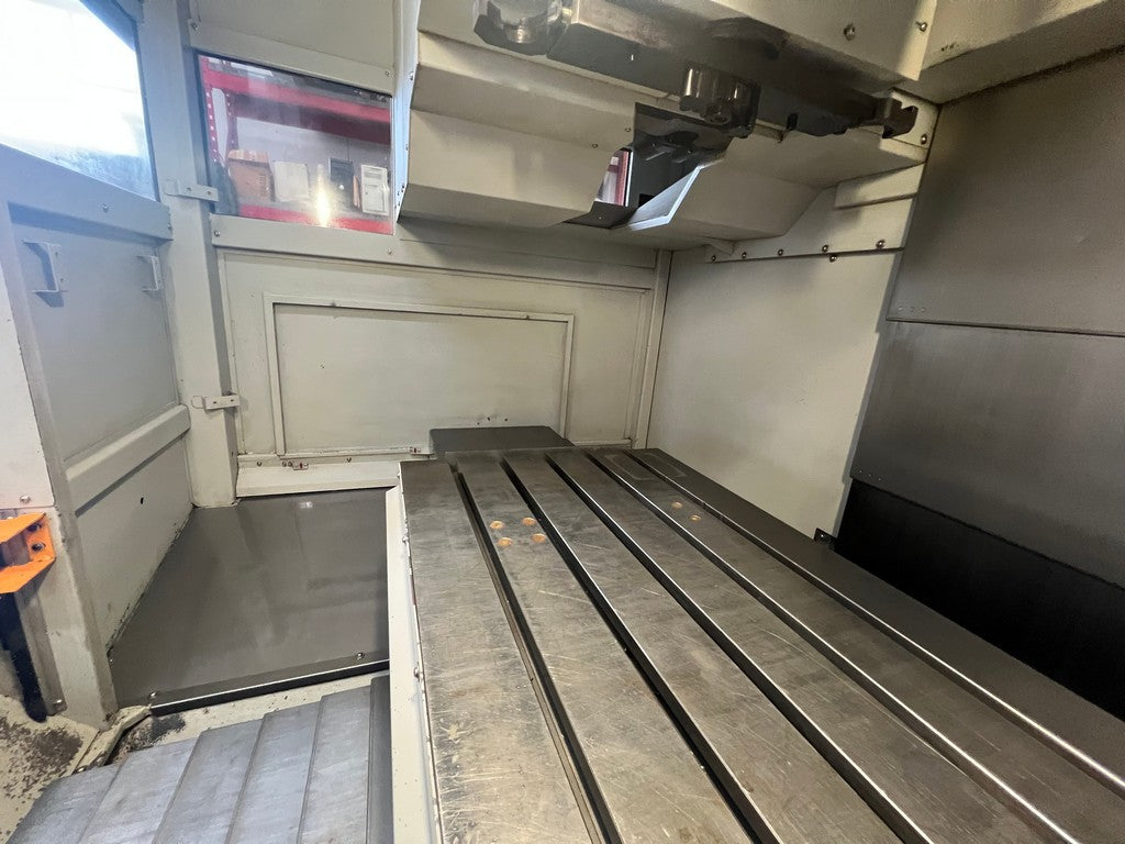Mandrino ISO-40 (DIN 69871) a 12.000 rpm (max 25KW) raffreddato da apposito frigorifero, refrigerazione ad alta pressione attraverso il mandrino, cambio utensili RANDOM a braccio di scambio da 30 posizioni, presetting utensili laser BLUM NT A2, tastatore pezzo wireless BLUM TC-50 (nuovo ancora imballato), righe ottiche HEIDENHAIN su tutti gli assi ed evacuatore trucioli a tappeto.