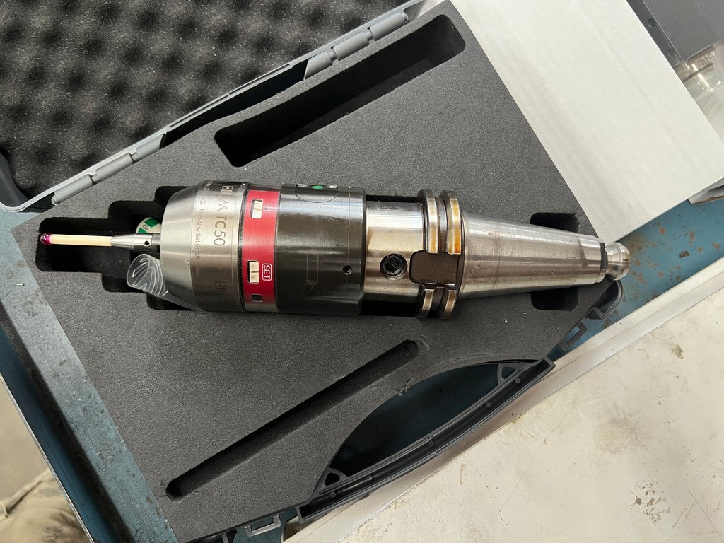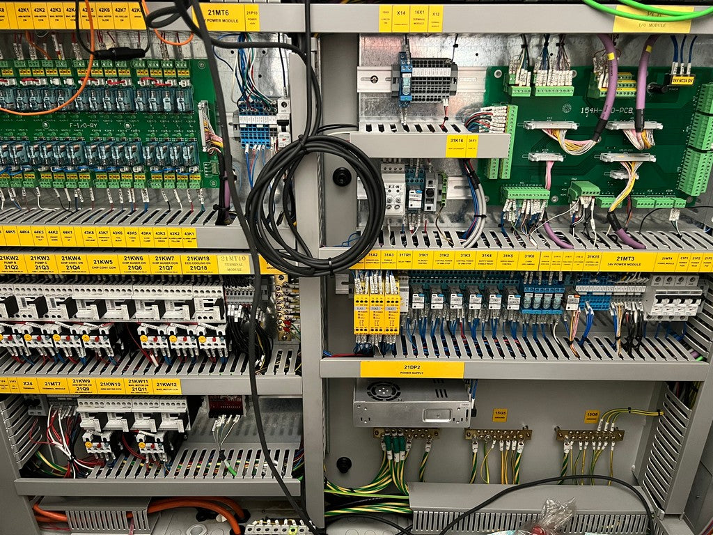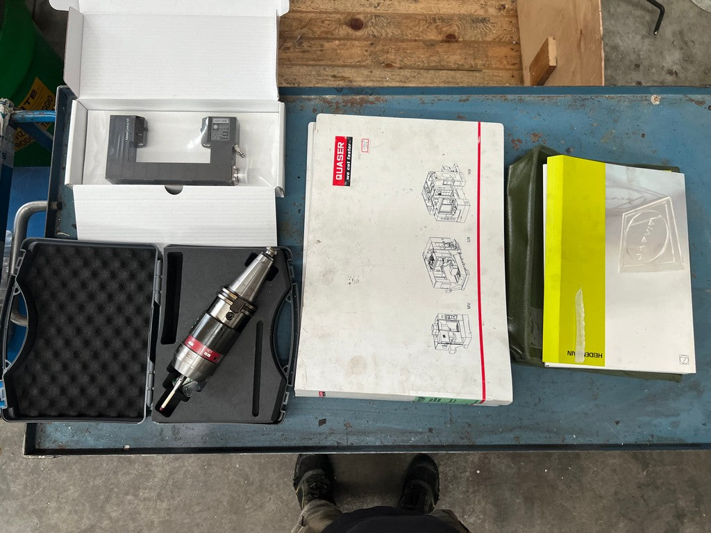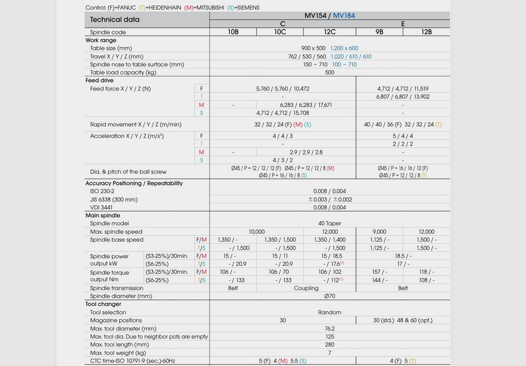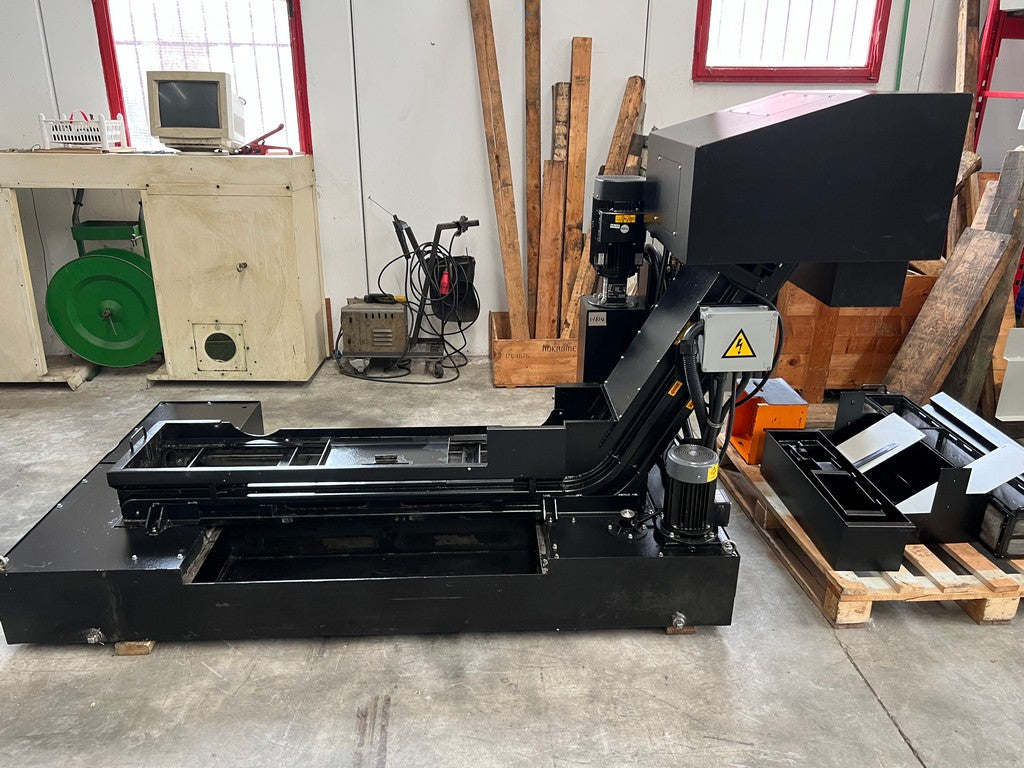Mandrino ISO-40 (DIN 69871) a 12.000 rpm (max 25KW) raffreddato da apposito frigorifero, refrigerazione ad alta pressione attraverso il mandrino, cambio utensili RANDOM a braccio di scambio da 30 posizioni, presetting utensili laser BLUM NT A2, tastatore pezzo wireless BLUM TC-50 (nuovo ancora imballato), righe ottiche HEIDENHAIN su tutti gli assi ed evacuatore trucioli a tappeto.