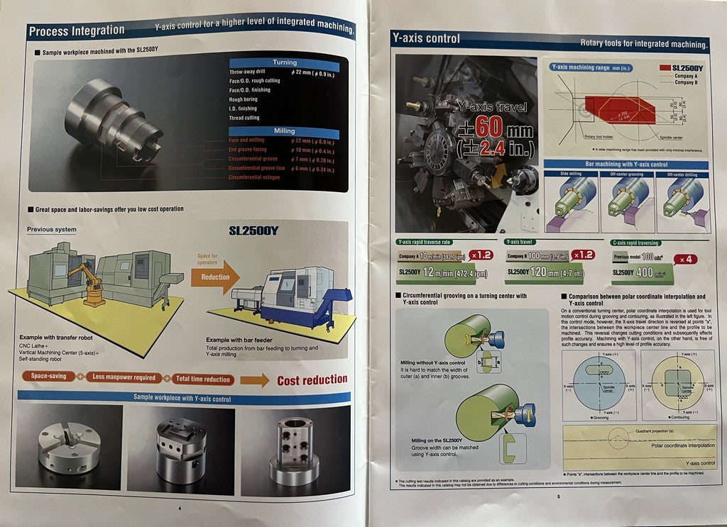 Il tornio cnc motorizzato asse Y MORI SEIKI SL 2500 Y usato è un veloce tornio a controllo numerico a banco inclinato di dimensioni medie, dotato di contropunta, elettromandrino con asse “C” e di una torretta motorizzata con asse Y con 120mm di corsa (+/-60) a 12 posizioni.