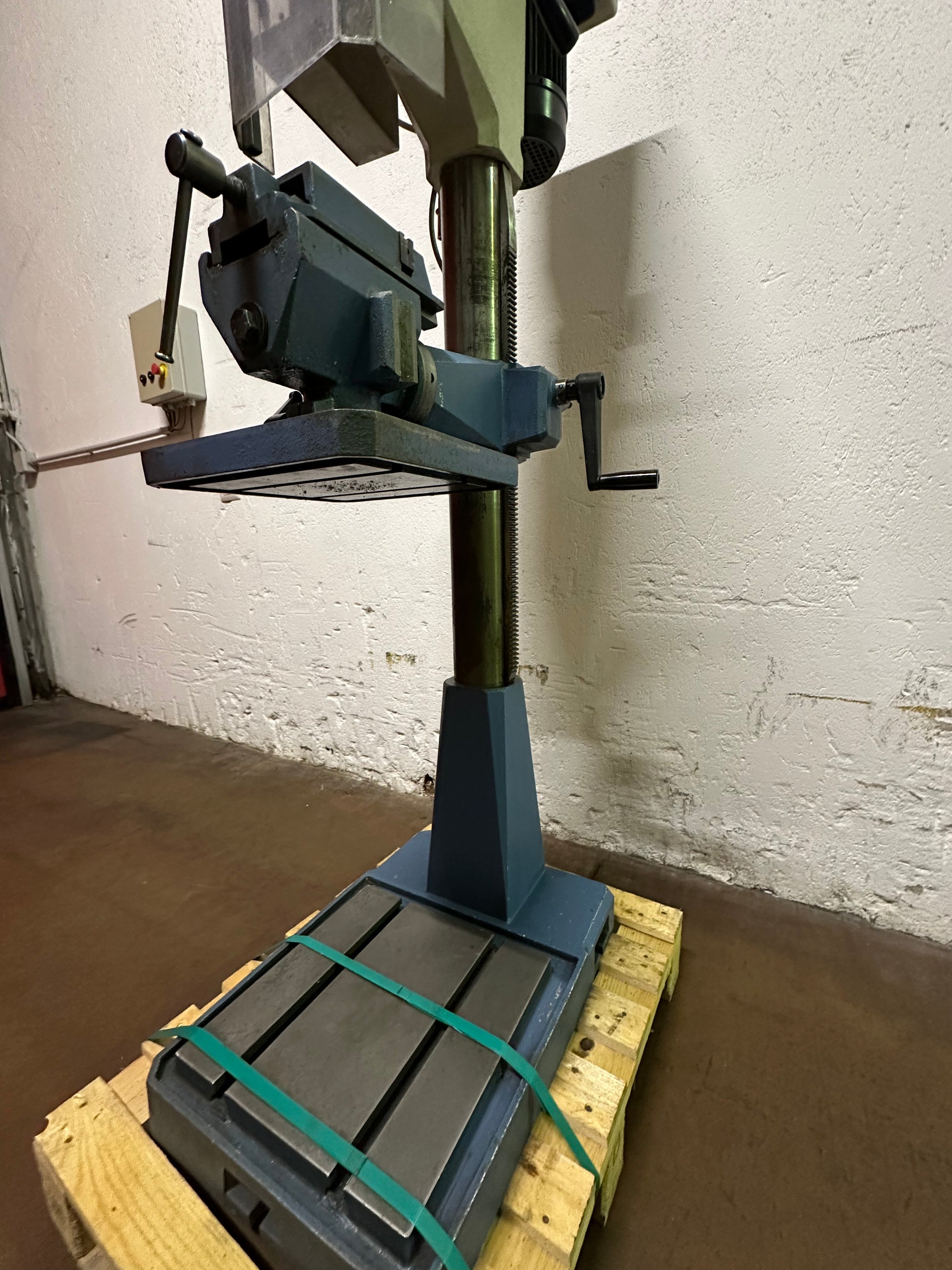 Trapano a colonna professionale di costruzione italiana, modello Bimak 22 FO, ideale per lavorazioni di precisione su acciaio e ghisa.