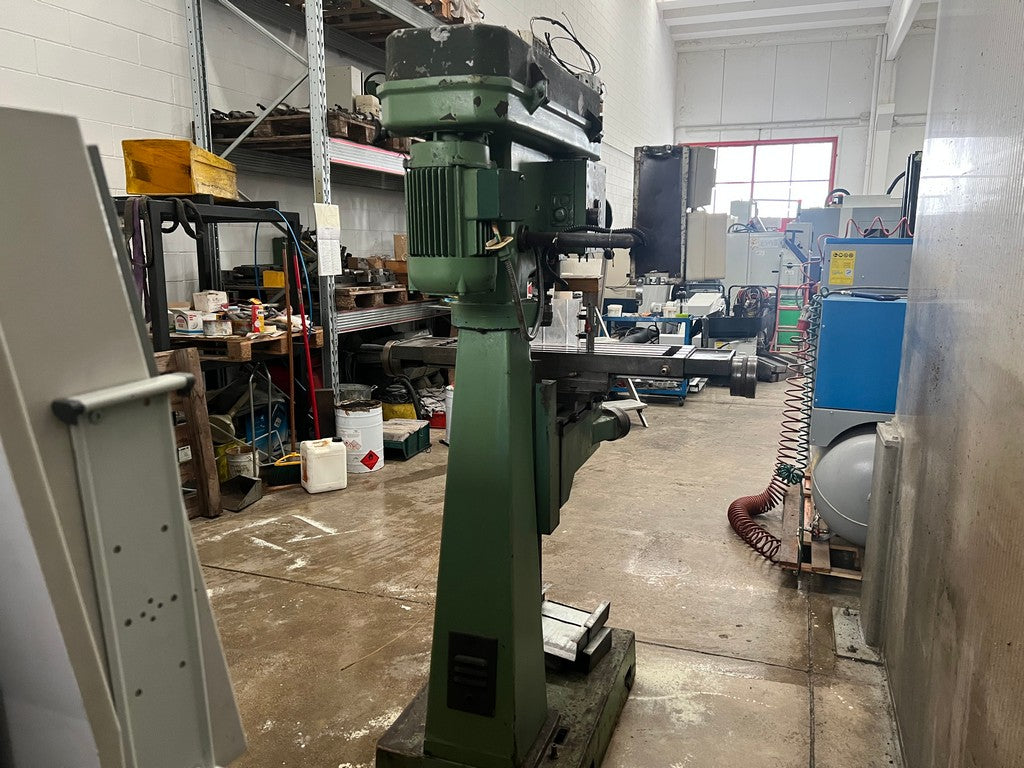 Il trapano fresa FAMUP RAG 40 usato è un robusto trapano a colonna con tavola a croce, completo di impianto di raffreddamento, con le seguenti caratteristiche: